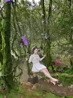 Wear a pretty dress, pose on riverside rocks, weave through vine-dappled light, or crouch by mushrooms—every shot oozes ethereal charm! Afternoon light is especially magical.