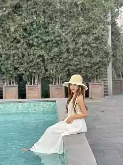 1️⃣Outdoor swimming pool: Wearing a long skirt is more elegant👗