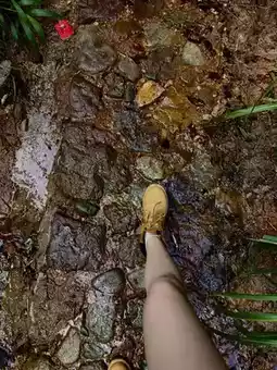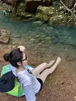 1️⃣ It's not recommended to wear slippers for hiking. If you want to play in the water, you can bring a pair of slippers, as the small pebbles at the bottom of the water can be really painful 😭