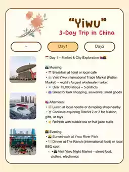โข ๐๏ธ Visit Yiwu Huangyuan Market โ focus on clothing, smaller than Futian