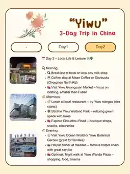 โข ๐๏ธ Optional: Night walk at Yiwu Wanda Plaza โ shopping, food, cinema
