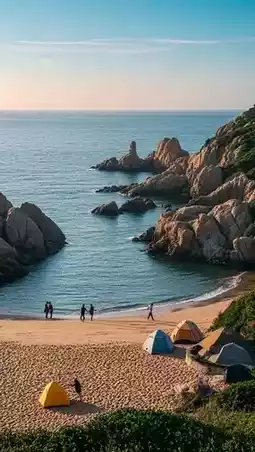 Features: Clear blue sea, yellow sand, and a kingdom of shells and algae. Ideal for island camping and sunrise watching. The main island’s Dasha’ao Beach is stunning.
