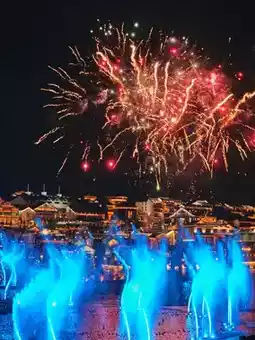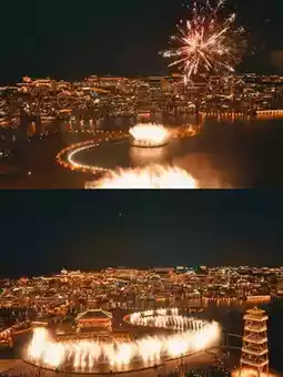 and the lights at night, with intangible cultural heritage shows, dragon water shows, and fireworks...