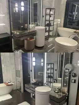 My favorite hotel has a very large bathroom with two sinks. The lighting on the sinks is especially suitable for makeup [Awesome][Awesome][Awesome]