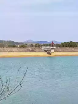 Step into a scene straight out of "The Oath of Love"! The mesmerizing blue lake and gentle breeze on the dam create the perfect photo opportunity!📷 There's also a pine forest to the right of the lake, ideal for a relaxing break.