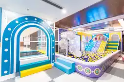 The indoor children's playground is a haven for kids to play freely on rainy days or escape the summer heat. Designed as a vibrant space for family fun, the playground features soft padded flooring and rainbow-like slides, combining play, interaction, and growth in a weather-proof environment. It's an ideal space for kids to release energy while parents enjoy quality time together.