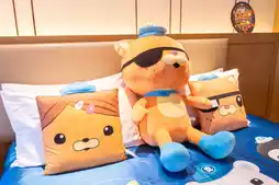 Another option is the Octonauts-themed room, where the magical world of "Octonauts" comes to life. The soft bedding features vibrant Octonauts designs, immersing guests in an underwater adventure. Kids can drift into sweet dreams accompanied by their favorite characters. Cute character cushions are placed by the bed, perfect for snuggling and sparking ocean adventure stories.