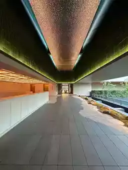 There are large outdoor water features flowing through the restaurant, reception hall, and bar, as well as dry landscape gardens in the guest room areas. The most striking feature, of course, is the garden landscape in the reception lobby on the first basement floor, which places an entire modern architectural volume within a Chinese aesthetic landscape miniature. Rationally, you can perceive that the building has many levels, but the clever design makes you subjectively feel as if you are walking on a "flat surface" surrounded by mountains and water. The spatial flow is either above or below the water level, and visually, it is either obstructed or opened up by walls of various materials. Even the guest rooms feel like a small world independent of the outside. It truly is one of the best choices for design-savvy individuals to disconnect from the world.