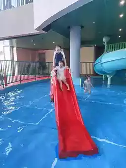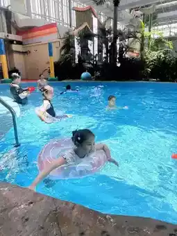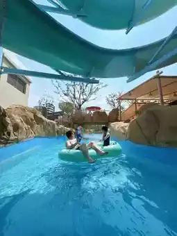 Water park: Tickets for the water park are sold separately. Children under 1.2 meters are free, adults are 160 RMB per person. The park is divided into indoor and outdoor areas. The outdoor area is really sunny during the day, so be sure to use sunscreen to avoid sunburn on the kids. The indoor area has a surfing zone, various small water slides for little kids, and a shallow water area. The outdoor area has several thrilling slides, but you can’t ride if you weigh less than 90 jin (about 45 kg)! There’s also a lazy river where you need to rent a float from the park for 50 RMB each; four people can share one float.