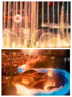 4️⃣ Longteng Water Show & Fireworks 🎆 Starts at 19:30, a breathtaking dance of water and fire!