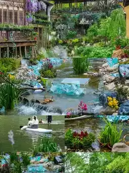 1. Forest-style cultural check-in: Take a morning stroll along Long Kiln Street to feel the rustic street life; catch the unique bamboo rafting performance, watching performers glide lightly on the water, showcasing traditional skills; enjoy the lakeside scenery from the boardwalk; step into a blooming paradise, wandering through flower seas and fairy mist in the “canyon,” encountering a real-life Monet Garden.