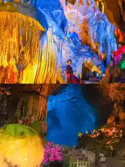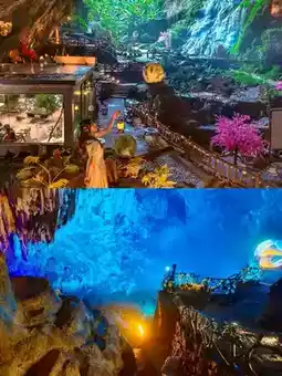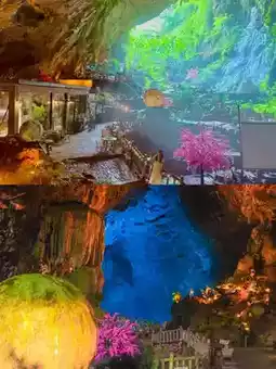 - Wanfu Cave (Million Bats Cave): Named for its former bat inhabitants, featuring stunning stalactites, stalagmites and stone columns resembling an upside-down forest. The light show creates dreamlike 3D visuals without glasses.