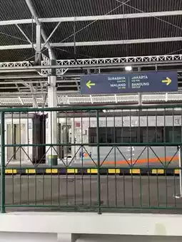 Inside, the station is kept clean and equipped with self-service ticket machines, waiting areas, and snack stalls, allowing travelers to easily purchase tickets and enjoy Indonesian specialty snacks.