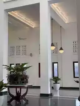 Yogyakarta Tugu Train Station is a historic railway hub, with its white colonial-style building becoming an important landmark in the city of Yogyakarta. The overall design combines Dutch colonial architectural styles, featuring an elegant exterior and spacious interior filled with a strong historical atmosphere.