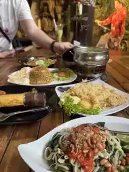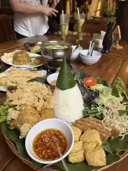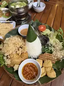 The culinary highlight was undoubtedly the enormous Nasi Tumpeng, a cone-shaped mound of rice surrounded by an array of delectable side dishes like crispy fried chicken, flavorful tempeh, tofu, and various sambals. Every bite was a burst of traditional Indonesian flavors. Beyond the food, the vibrant energy of the place, often bustling with locals and tourists alike, made it a true trip moment to cherish, showcasing the heart and soul of Yogyakarta.