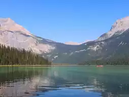 Emerald Lake is a glacial lake located in Yoho National Park in British Columbia, Canada. Known for its stunning, vibrant turquoise waters, the lake is surrounded by the towering peaks of the President Range in the Canadian Rockies. The lake's distinctive color comes from "rock flour," or fine glacial silt, suspended in the water. The water is fed by glaciers and is most colorful during the summer months when glacial melt increases. The hues of the lake change with the light, offering a different view throughout the day.