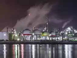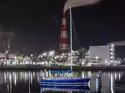 From the seaside promenade, the lights of the factories are reflected on the water, creating a fantastic landscape that looks like a scene from a science fiction movie🌌