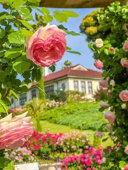 This park is located on a hill overlooking Yokohama Port, and is especially popular for the colorful roses that bloom in spring and autumn. It's amazing that you can see this for free! It's so spacious that you'll be impressed, and the roses are well-maintained. The rose tunnel in Photo 1 is one of the most popular photo spots. It's extremely difficult to take pictures of this place without anyone, especially on holidays, so I went there at 5:30 in the morning, but there were more photographers than I expected, so it was still difficult to take pictures. Still, there are fewer people than during the day, and there are four tunnels, so if you wait a little, you'll have a good chance of taking pictures without anyone. The yellow tunnel in Photo 2 is even more difficult to photograph. There is only one tunnel here, and it seemed like photographers who wanted to take pictures of pets and children were waiting in line, so when I went there last year, I gave up on taking pictures without anyone. The photo was taken in 2022. Photo 3 is a low-angle shot of the rose path. I thought the combination of the old Western-style building and the roses in photos 4 to 6 was nice.