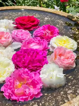 Photos 7 (2024) and 8 (2022) show roses floating in water. The type of roses seems to change depending on the year.