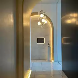 The bathroom has a very luxurious feel