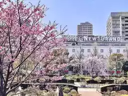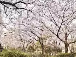 This photo showcases a lovely night vista of weeping cherry tree blossoms (Prunus pendula / ”shidare-zakura” in Japanese) located in Yamashita-Koen Park. The trio of trees can be found adjacent to a large rose garden, situated on the opposite side of the road from the historically renowned Hotel New Grand (established 1927). Depending on your vantage point, you may also be able to include Yokohama Marine Tower in the backdrop of the cherry blossoms.