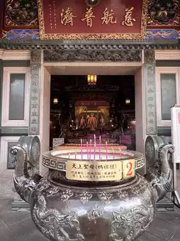 The Yokohama Mazu Temple is located in Yokohama Chinatown. It is the first Mazu temple in Japan. It was built with funds raised by local Chinese and covers an area of about 300 pings.