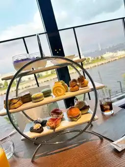 Lounge scenery 1: You can sit in a comfortable chair at any time to enjoy the harbor and sea views, Marine & Walk, the Ferris wheel and another InterContinental Hotel landmark, or simply relax in the warm sunshine, feel the refreshing sea breeze, and enjoy fine wine and delicious food. During happy hour, there are two savory dishes and a semi buffet, as well as many drink options, including non-alcoholic beer and non-alcoholic cocktails.