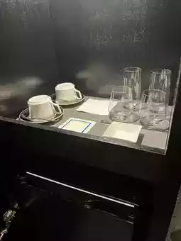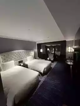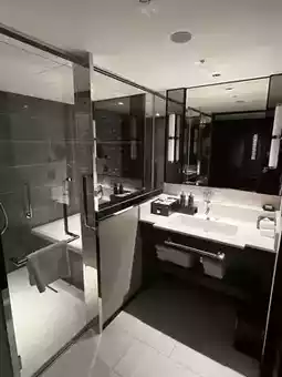 The rooms are spacious and have high ceilings, with a calm color scheme and luxurious interior. The combination of wood and indirect lighting is exquisite, giving it a luxurious feel.