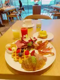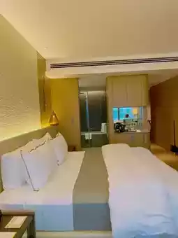 The Westin Hotel Yokohama is located in the heart of the Minato Mirai district, featuring a modern 23-story building. Its exterior is designed to resemble a "sailing ship swaying in the wind."