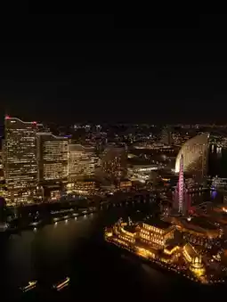 This high-rise condominium hotel offers a panoramic view of the port city, including the Yokohama Landmark Tower, the Ferris wheel, and the Bay Bridge, from your room.