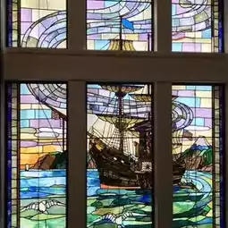 The colorful stained glass in the second floor hall and the classical interior are also must-sees.