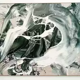 • View Kazuo Shiraga's work from a distance, then get closer and observe the brushstrokes (footprints) and the thickness of the paint.