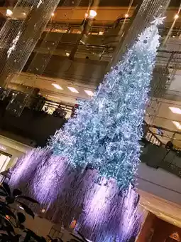 A low-angle shot, looking up from below, is an effective way to capture the dynamic beauty of the tree, which fills the atrium space. 5. Video and slow shutter shooting are also recommended.