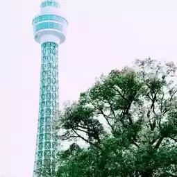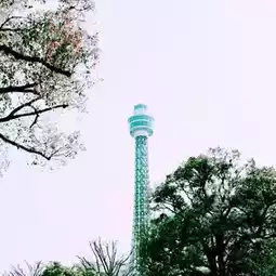 Walking from the central entrance of Yamashita Park (near the Hikawa Maru) toward Marine Tower, you'll find a spot where you can see the tower through the gaps in the cherry blossom trees lining the street. Looking up from the northeast side of the park (near the Sea Guardians Restaurant) is especially beautiful, capturing the Marine Tower beautifully through the cherry blossoms.
