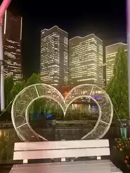 Covering an area of 186 hectares and surrounding the bay, it’s bustling with commercial activities during the day but exudes a vacation-like atmosphere in the evening. Here are some recommended spots to enjoy the sunset and night views: