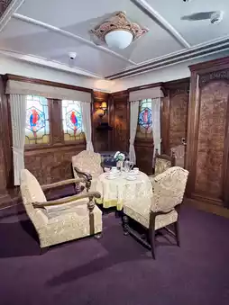 - The restored first-class dining room offers vintage vibes for close-up snaps.