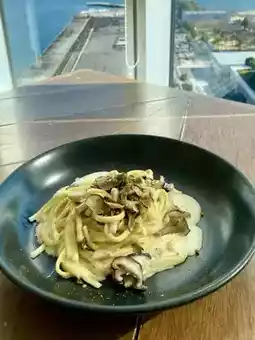 • Fresh Cream Pasta with Seasonal Mushrooms, Bottarga & Gorgonzola