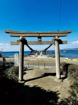 This shrine is located along the coast of Araki, and from the stairs leading to the shrine grounds, you can see a beautiful view of the torii gate and the sea✨
