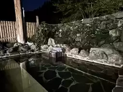 There are two indoor baths, hot and lukewarm, and a spacious open-air bath in the back. It was perfect for soaking away the fatigue of travel. 🌙