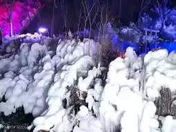 These are icicles of art, about 30m tall and 200m wide, created by artificially spraying water from a stream.