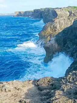 Zanpa Cape (残波岬) is a scenic viewpoint located in Yomitan Village, in the central part of Okinawa Prefecture. It features a steep cliff approximately 30 meters high that extends into the sea. It is also home to one of the tallest lighthouses in Okinawa.
