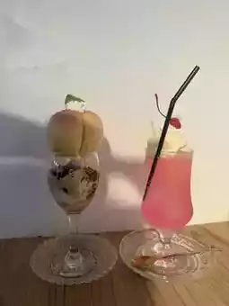 My favorite peach parfait and cream soda are cute and delicious ^^