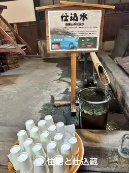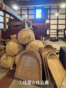 The brewing storehouse is a renovated large earthen storehouse with a floor area of 450 tsubo, where sake brewing was actually carried out.