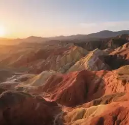 Danxia Sunset: Evening views are spectacular! The setting sun casts its glow on the Danxia formations, turning the entire scenic area golden, complementing the red rocks - breathtakingly beautiful, truly a golden dreamland.