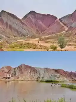 Remember to bring your camera📷 The Danxia landform here looks great from every angle! From a distance, you can see the distinct layers of the mountains, and from above, it looks like a spilled palette. Sunny days are perfect for capturing reflections on the lake, while rainy days create ink painting-like effects.