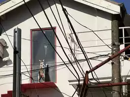 At the journey's end, a cat poked its head out of a window, curiously observing the world. In its serene gaze, we seemed to see the dreams of ancestors who once prayed before stone piles: a life free from fear and a warm corner to call their own.