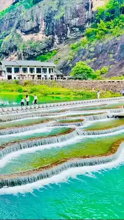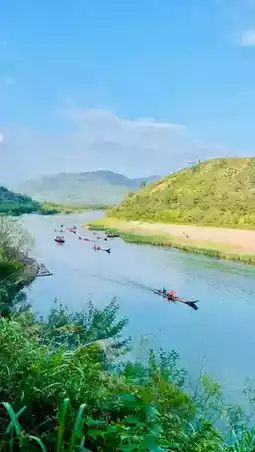 Upon arriving at my destination, I was stunned by the sight before me. Countless waterfalls, like giant ink paintings, hung on the mountains. I experienced the joy of paddling a crystal boat, feeling the gentle flow of water against the hull, and admiring the surrounding scenery. The moment of feeding the koi was even more unforgettable, as the colorful fish competed for food, creating a very interesting scene.