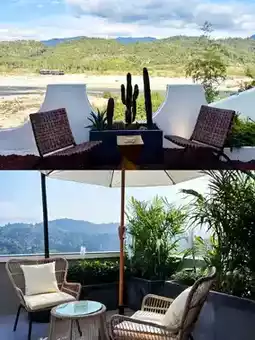 ■ At dusk, bask in the golden sunset on the terrace, claiming your romantic moment amidst the mountains.