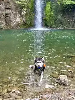 Pet-friendly park with clear water suitable for swimming. Not recommended for hiking due to many steps. It takes only a few minutes from the entrance to reach the pond, and a short walk further leads to a waterfall pond, then you can return.