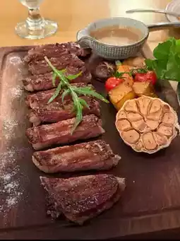 I started with a steak—sizzling and juicy when served, its aroma instantly captivating my taste buds. Paired with perfectly roasted vegetables, each bite was pure satisfaction. The pasta was equally impressive, with rich sauce coating every strand, making it incredibly indulgent. The drinks didn’t disappoint either—the sparkling water was refreshing, while the coffee had a deep, aromatic richness. Dining there, surrounded by elegant decor and soft music, was pure bliss.